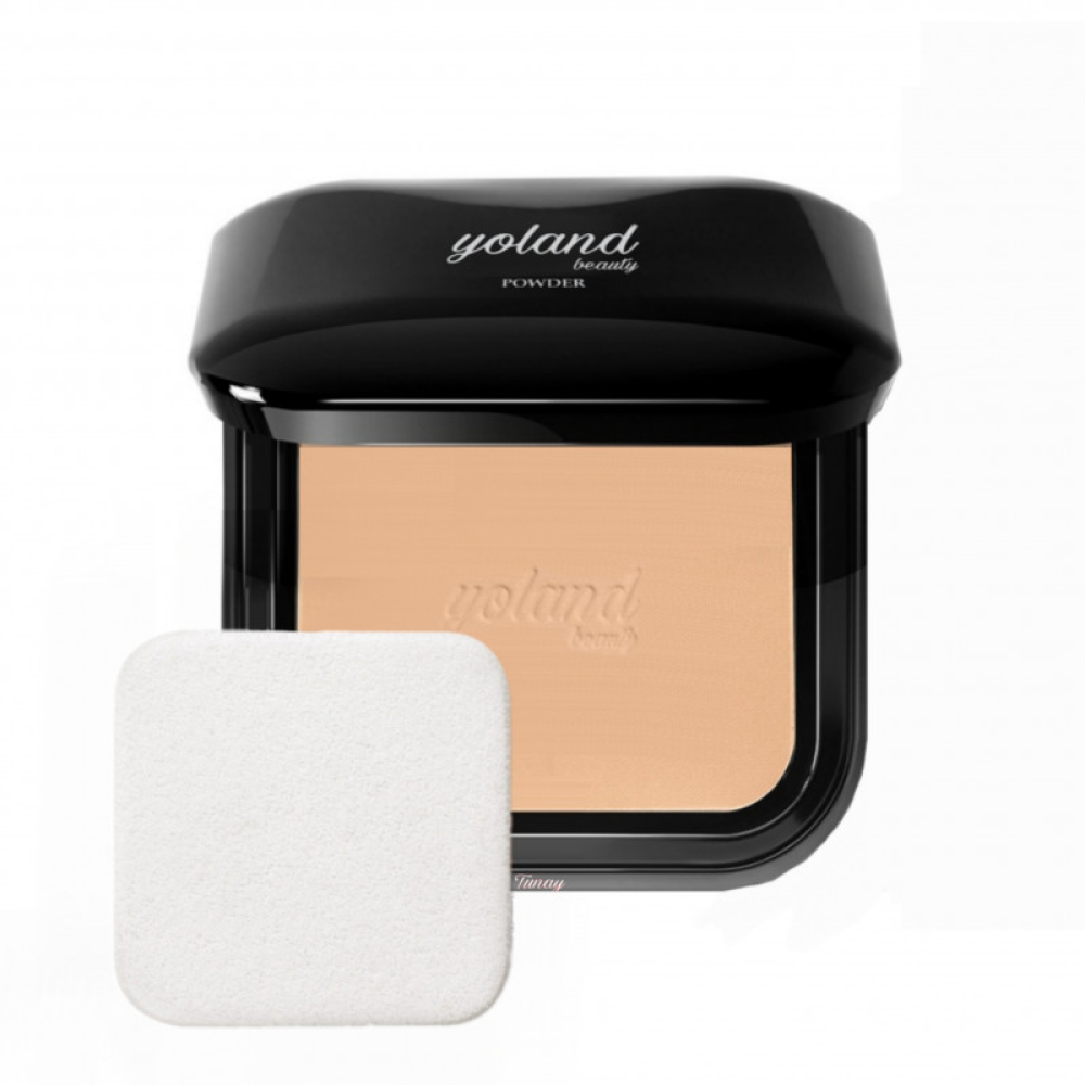 تأتي البودرة في علبة مدمجة عصرية مع لمسة بلون اسود ومزينة بشعار يولاند على الغلاف .